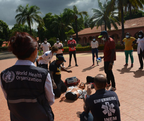 A Organização Mundial de Saúde (OMS), em conjunto com o Alto-Comissariado para o COVID-19, estabeleceu uma parceria com o Instituto Nacional de Emergência Médica de Portugal (INEM), que enviou uma equipa de emergência médica (PT EMET) para dar formação em Suporte Básico de Vida e Desfibrilhação Automática Externa (SBV-DAE).