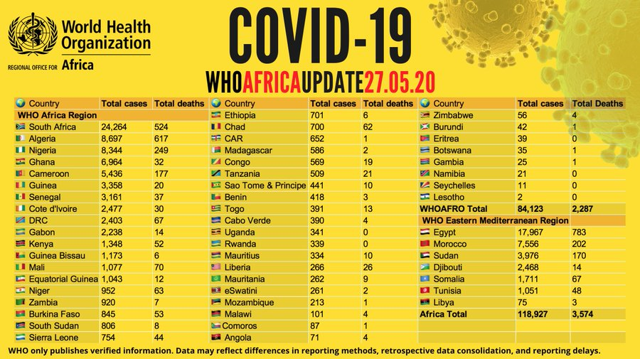 - Coronavirus - Africa: COVID-19 update, 27 May 2020