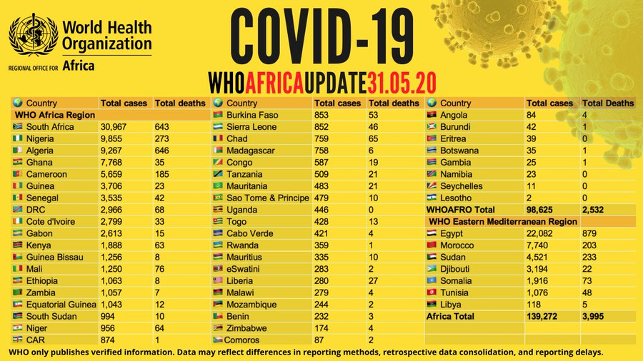 - Coronavirus - Africa: COVID-19 update, 31 May 2020
