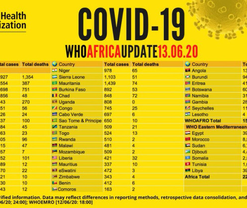 Coronavirus - Afrique: COVID-19 WHO Afrique mise à jour 13 June 2020