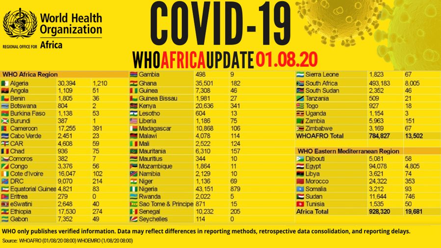- Coronavirus - Africa: COVID-19 WHO Africa Update (1st August 2020)