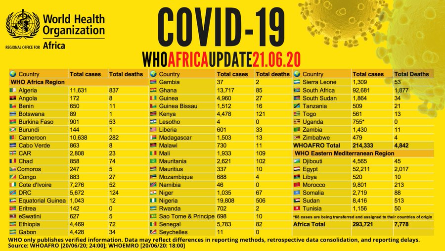 Coronavirus - Africa: COVID-19 WHO Africa Update 21 June 2020