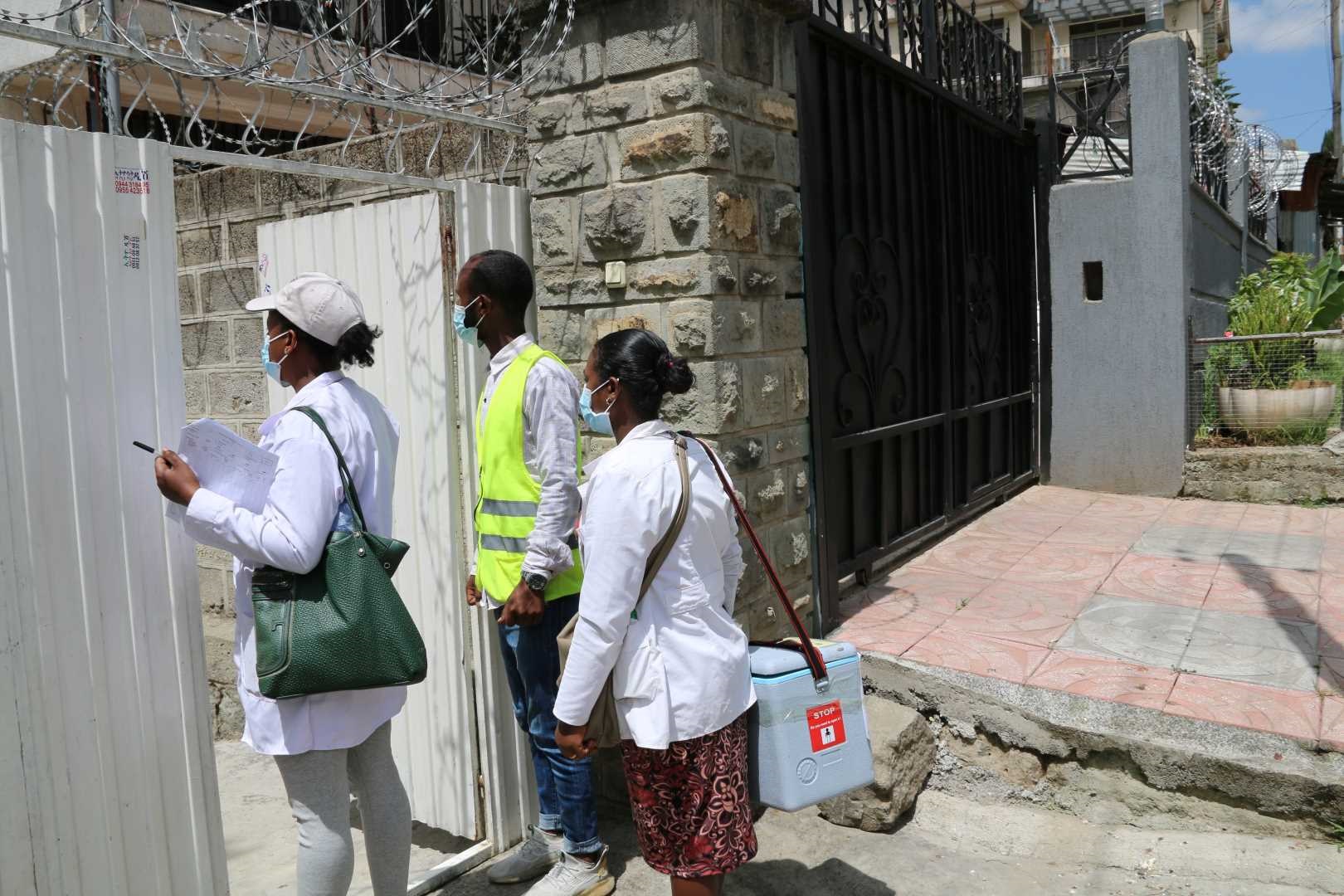 - Vaccinators in Addis Ababa going house to house to administer nOPV2 vaccine to under-five children. Credits: WHO/Loza Mesfin